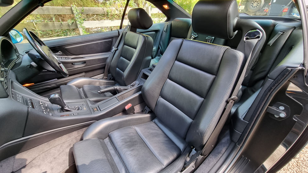 This 1997 BMW 840Ci Sport has just three owners from new and is with the current owner for over 17 years. The service history is exceptional and documented across two lever arch folders. The pillarless coupe’s exterior is finished in Atlantis Blue and features pop-up headlights, fog lights, a power-operated sunroof, and black bodyside trim.